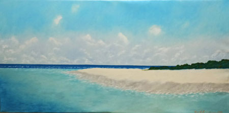 código.38. Los Roques, óleo sobre lienzo, 60x120 cms, año 2024 |
