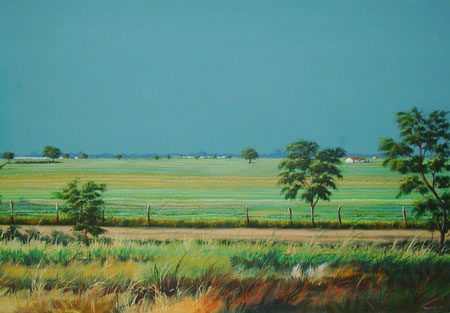 código.1. paisaje llanero, acrílico sobre lienzo, 40x49 cms, año 1985 |