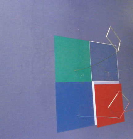código.1, Dos cuadrados, acrílico, alambre y tela sobre madera, 70x70 cms, año 1980 |