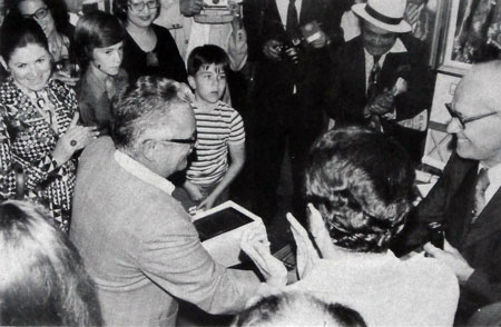 El Dr. Montes Lugo al momento de recibir el Primer Premio de Miniatura, en el XIII Salon Anual de la Sala Armando Reveron Fuente: Libro de Oro de la Sala Armando Reveron, Cinco Lustros de Actividad Plastica, Caracas, año 1981 Textos: Adriano Serradimigni; Zayra Naskareños Fotografia: Foto Victor |
