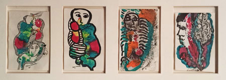 código.2, Cuatro figurativos, tinta y goache sobre cartulina, 17x11 cms cada figura, año 1981 |