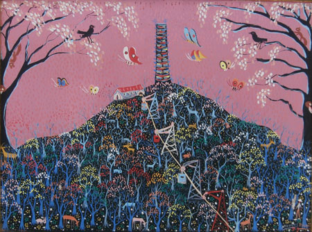 código.1, Montaña con teleferico, acrílico sobre lienzo, 40x30 cms, año 1979 |
