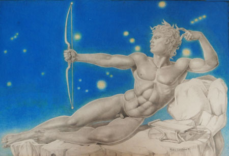 código.19. Orion; lápices de colores sobre cartulina, 49x73 cms, w0038 |