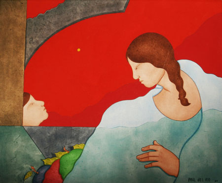 Del Rio Paul (1943-2015) Paul Del Rio Canales, nace en Cuba, de padres españoles que emigraban de la guerra civil española. Llega a Venezuela a los dos años de edad. Personaje polémico por su trayectoria guerrillera tanto en Venezuela como en Latinoamérica. A los 17 años de edad se unió al Movimiento de Izquierda Revolucionaria MIR Años 19 años formó parte de las FALN, Fuerzas Armadas de Liberación Nacional, donde era conocido bajo el pseudónimo Máximo Canales; En 1962 se apoderó del carguero venezolano Anzoátegui y lo llevó a la costa de Belem de Brasil, evadiendo la guardia costera norteamericana. En 1963, con 20 años de edad, comandó en el Hotel Potomac de Caracas el secuestro del Astro de Futbol mundial y exjugador del Real Madrid, Alfredo Di Stefano Tal secuestro duro tres días, 70 horas; Di Stefano fue liberado cerca de la embajada de España en Caracas. El acto del secuestro se denominó “Julian Grimau”, comunista español que había sido recientemente fusilado por la dictadura de Francisco Franco. Asimismo, se argumentó que fue un acto de protesta por el enfoque de gobierno de la IV república de Venezuela, presidido por Rómulo Betancourt. Romulo Betancourt, por su parte, le retiró la nacionalidad venezolana a Paul del Rio y a toda su familia; sin embargo, le sería restituida en 1975, bajo en gobierno de Carlos Andres Perez Murió en el año 2015, a la edad de 72 años en el Cuartel San Carlos, donde vivía. Respecto a su trayectoria artística Eduardo Blanco Estrada ha señalado: “Obra figurativa, qué salvo raras excepciones, dispone de uno o dos personajes en un contexto semi simbólico. La mayoría de las veces la figura central es femenina: la mujer en maternidad con niño, la mujer en mercado callejero vendiendo vasijas, la mujer migrando, la mujer objeto; etc Aun cuando expresó que el arte podía ser un medio adicional para expresar sus lineamientos políticos, se aprecia escenas directamente inspiradas en la vida campesina. Objetos aislados que requieren una conexión contextual por parte del espectador; como si tuviese que descifrar un mensaje. Recurrentemente incorpora en sus obras ajíes picantes, manzanas, guitarras, paraguas, naipes, vasijas, una letra del alfabeto, un número, una nota musical, una llave, una hoja suelta y desprendida flotando en el aire, etc Emite varios mensajes simultáneos. Aprovecha asimismo la similitud de formas para generar ambigüedad de interpretación; la manzana puede ser un explosivo o la cara de un niño; la hoja alargada que es también un ají picante; la hoja redondeada que es también un corazón, etc Los personajes aun cuando están descalzos, no muestran pobreza ni signos de hambre; las ropas que portan no son harapos, ni tampoco se advierten personajes de raza negra o afrodescendientes. Puede tratarse de pintura autobiográfica ya que la guitarra, el paraguas y la percepción de la lluvia; los naipes, el éxodo continuo; la huella, pisada o rastro; el pasamontaña, la luna; etc son característicos relevantes de la vida guerrillera. Buen dibujante, eficiente, apela a la simplicidad, líneas elementales en ropajes, figuras, cabellos, fondos; mínimo trabajo en luces ni sombras. En sus composiciones demuestra excelente manejo cromático en la separación de planos, entre el fondo o contexto; y el protagónico de primer plano. Figuras Contornos, de frente o perfil a veces con ojo frontal tipo egipcio. Se inició en 1966 realizando caricaturas bajo el pseudónimo URBA, ya que buscaba abrir nuevos caminos para expresar sus lineamientos políticos. A partir de 1974 tendría gran actividad artística tanto en exposiciones individuales como colectivas. Tal es el caso de las realizadas en la caraqueña galería Viva México durante los años 1974, 1975, 1976, 1977, 1978, y 1979; año éste en que decide sumarse al Frente Sandinista en Nicaragua. En 1984 expone en el Museo de Arte Moderno de Mérida Igualmente tendría presencia en individuales y colectivas hasta el año 1993; participando en algunas internacionales, en España, México, Finlandia, Japón, Colombia, Rumania, Austria, Canadá y Alemania Realizó numerosas serigrafías lo que ayudó a expandir rápidamente su nombre o presencia dentro del ámbito artístico. |