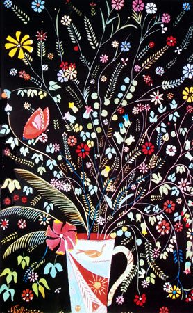 código.8, Florero, óleo sobre lienzo, 70x38 cms, año 1968 |