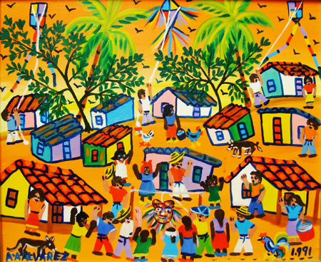 código.1, LA PIÑATA EN EL BARRIO, acrílico sobre lienzo, 50x60 cms, año 1991 |