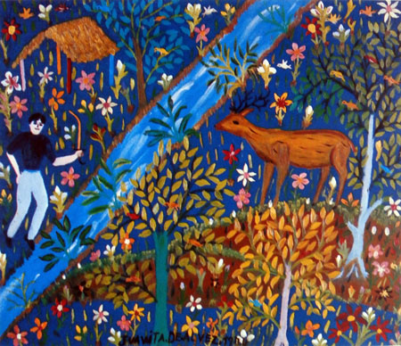EL CIERVO, acrílico sobre tela, 38x48 cms, año 1974 |