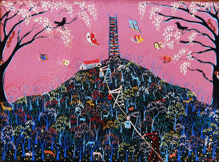 código.1, MONTAÑA CON TELEFERICO, acrílico sobre lienzo, 40x30 cms, año 1979 |