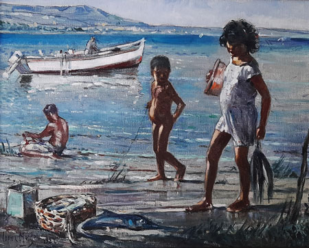 código.10. Escena marina, óleo sobre madera, 50x40 cms, año 1983 |