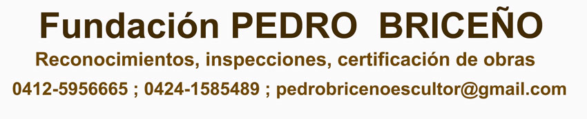 Pedro Briceño, artista plastico Venezolano Fuente: libro Escultura / Escultores, un libro sobre la escultura en Venezuela, Ediciones Maraven, Caracas, año 1977 Textos: Pedro Briceño, Juan Calzadilla Fotografias: Galeria de Arte Nacional GAN; Museo de Bellas Artes de Caracas; Diario El Nacional; Jose Grillo; German Gonzalez; Hotel Caracas Hilton; Galeria Durban; Blas Campanella; Galeria Adler Castillo; IVIC, Museo de la Tradición Barcelona, estado Anzoategui |
