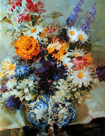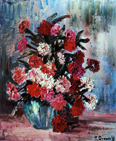 código.4. FLORES AZULES, óleo sobre lienzo, 56x47 cms, año 1971 |