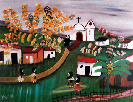 VAMOS A MISA, óleo sobre tela, 60x90 cms, año 1986 |