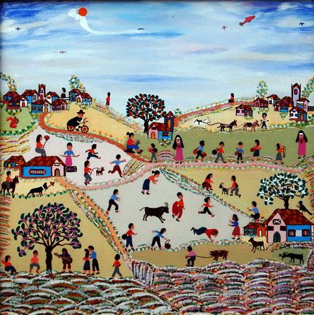 código.1, LA PIÑATA EN EL BARRIO, acrílico sobre lienzo, 50x60 cms, año 1991 |
