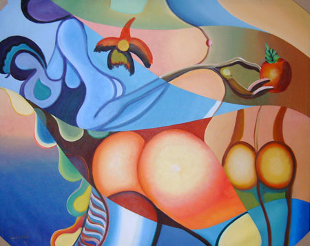 código.1. Desnudo con manzana, acrílico sobre lienzo, 80x100 cms, año |