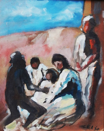 código.24. Vivienda en riesgo, Realismo Social, acrilico sobre lienzo, 50x70 cms, año 1987, w0037 |
